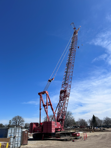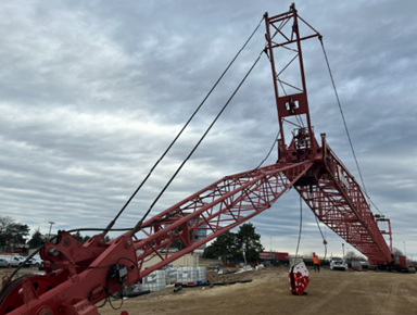 42,500-pound capacity crane with a 200-foot boom has arrived on site